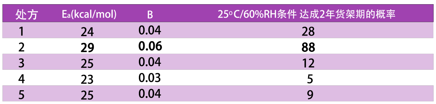 仿制药品种,含3种API的复方制剂,为快速锁定合适的处方、工艺,研发人员开发了5种不同处方、工艺的产品组合,平行进行ASAP实验,仅用6周左右的时间,锁定了能够确保2年产品货架期的处方、工艺、包装的组合,从而节约了大量的开发时间。